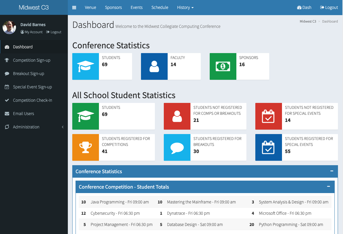 Website and application used both before and during the conference for marketing, registration, annoucements, and competition judging